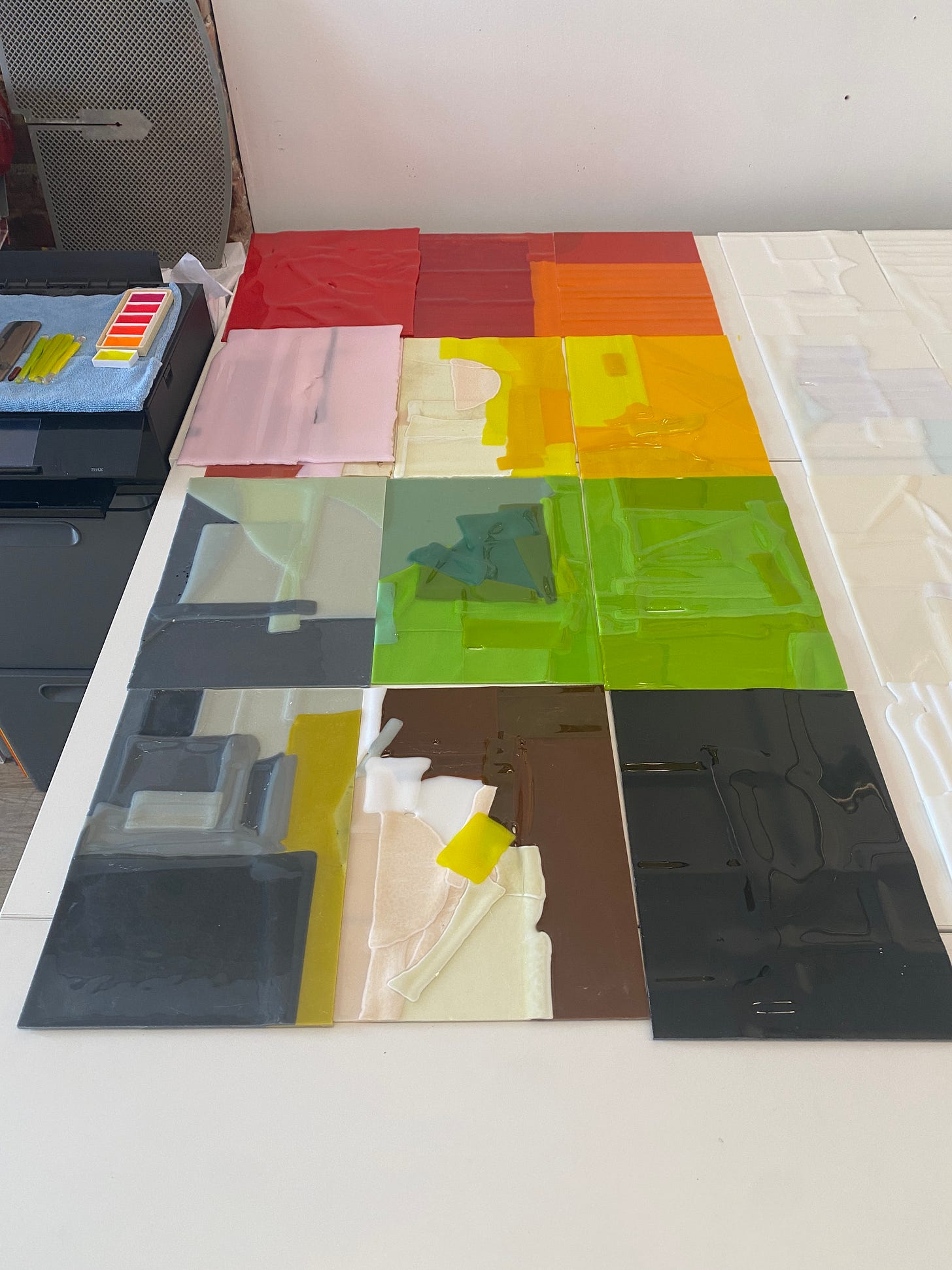 The graphic nature of these two works, and their rectangular shapes made me think of them as almost glass flags.
